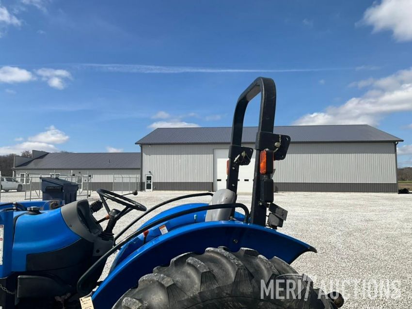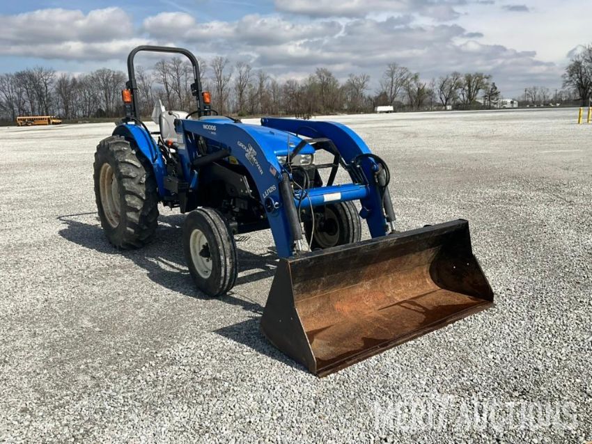 2008 New Holland TT60 Tractor, Hours: 907. Folding ROPS, Rear Aux Remote, 540rpm PTO, Woods Groundmover LU126 Loader, Skid Steer Coupler w/Bucket. SN: 269470