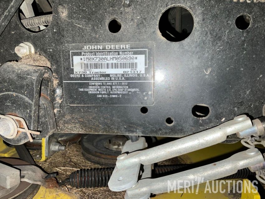 2017 John Deere X730 Lawn Tractor, Hours: 1,271. 54in High Capacity Deck, Power Steering, Hydro Transmission, Hyd Deck Lift. SN: 1M0X730ALHM050690