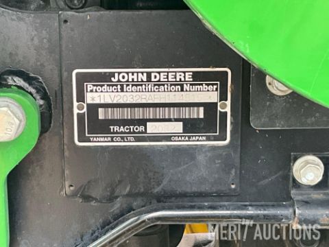 2015 John Deere 2032R Tractor, Hours: 405. OROPS, MFWD, EHydro Transmission, 520rpm PTO, John Deere H130 Loader w/QA Bucket, Industrial Tires. SN: 1LV2032RAFH114515.
