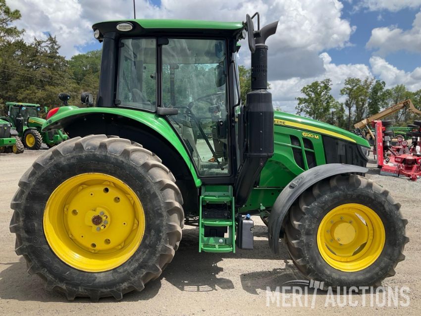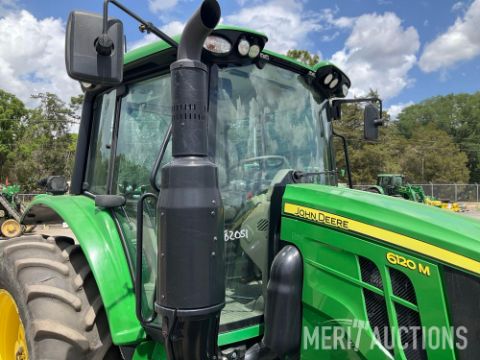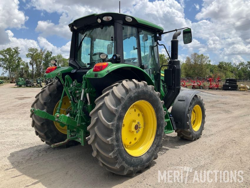 2021 John Deere 6120M Tractor, Hours: 1,502. CAB w/AC, 24x24 PowerQuad Plus Transmission, MFWD, Three Rear Remotes, 540/1000 Reversable PTO, Telescopic Lift Arms, Drawbar, Cold Start Package, Front Fenders, R&P Axle, Joystick w/Mid-Valves, Front Weight Block, 480/70R34 Rear Tires, 380/70R24 Front Tires. SN: 1L06120MCLG982051