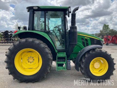 2021 John Deere 6110M Tractor, Hours: 1,392. CAB w/AC, MFWD, 24x24 PowerQuad Plus Transmission, Three Rear Remotes, 540/1000 Reversable PTO, Telescopic Lift Arms, Drawbar, Cold Start Package, Front Fenders, 460/85R34 Rear Tires, 380/85R24 Front Tires. SN: 1L06110MTMG984212
