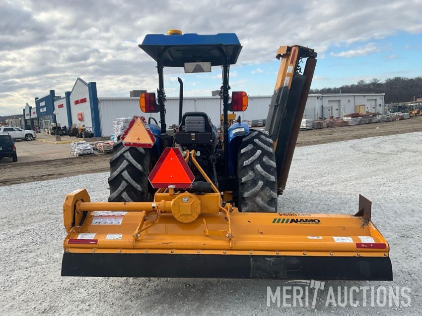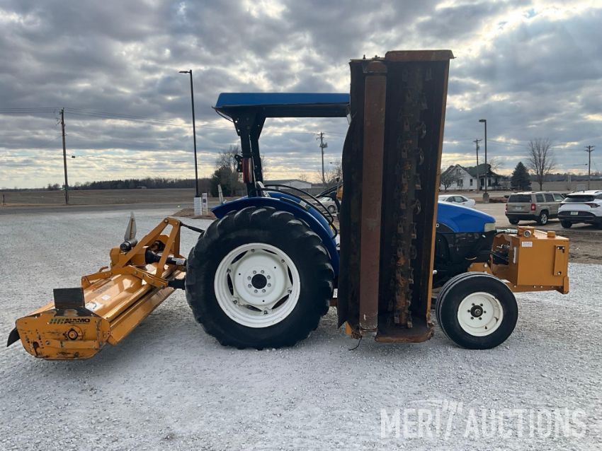 New Holland TN70A Tractor, 8 Speed Transmission, 2wd, 3 Point, 540 PTO, 1 Hydraulic Outlet, Canopy, ROPS, 3 Point Alamo 8ft. Flail Mower, 88in Alamo Side Mount Flail Mower, Rear Weight on Left Side, 3,149 Hours, 16.9-30 Rear Tires, 9.5L-15 Front Tires, SN: 001296684