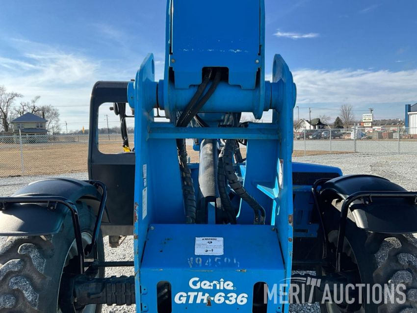 2016 Genie GTH-636 Telehandler, 6000 lbs. Lift Capacity, 3 Mode Steering, 3 Speed Transmission, Fender Kit, Light Kit, Front Chain Basket, 48in. Forks, Aux Hydraulics, Frame Leveling, 13.00-28 Foam Filled Tires, 5,045 Hours, SN: GTH0616E-10266