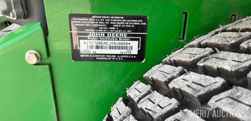 2019 John Deere Z720E Zero Turn Mower with  48in Deck, Kawasaki Engine, Advanced Discharge Shoot Attachment,  23/9.50-12 Rear Tires, 13/6.50-6 Front Tires, 824 Hours, SN: 1TC720EACJT010020