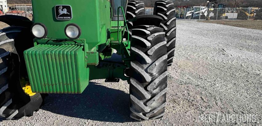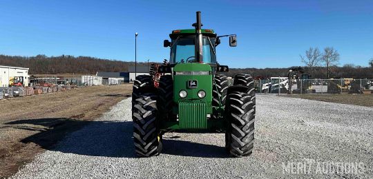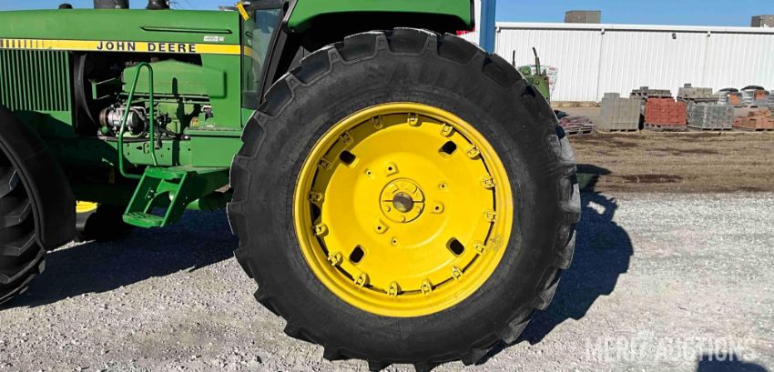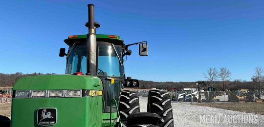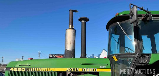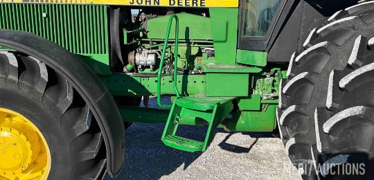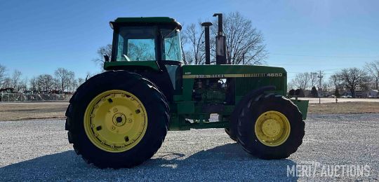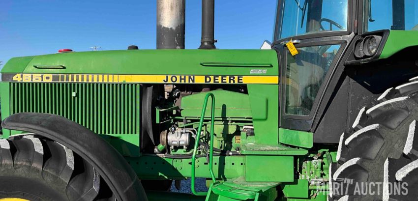 1983 John Deere 4650 MFWD Tractor, Cab with Heat and A/C, 15 Speed Powershift Transmission, 3 Point, Quick Hitch, 3 Hydraulic Outlets, 1000 PTO with 540 PTO Adapter, 480/80R42 Rear Tires, 18.4 R26 Front Tires, Showing 4,441 Hours, SN: RW4650P004077