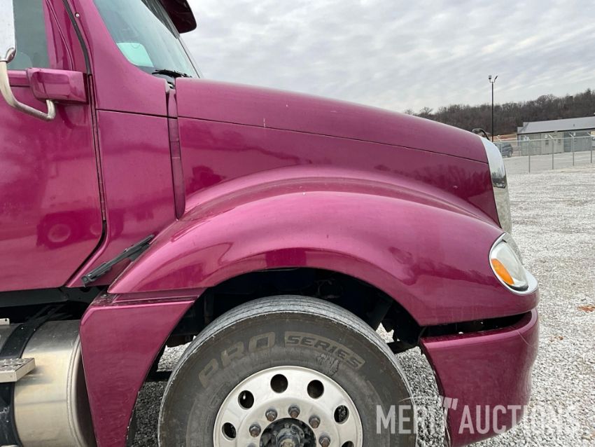2014 Freightliner Columbia 120 Day Cab Semi Tractor, CL120 64ST Model, (Glider Kit Truck), Detroit 60-12 Engine, Eaton Fuller 9 Speed Transmission, 190in. Wheel Base, Air Ride, Air Sliding 5th Wheel, 3.58 Rear Axle Gear Ratio, 11R22.5 Tires, 64,026 original miles, SN: 3ALXA7CG1EDFM2257, One owner!