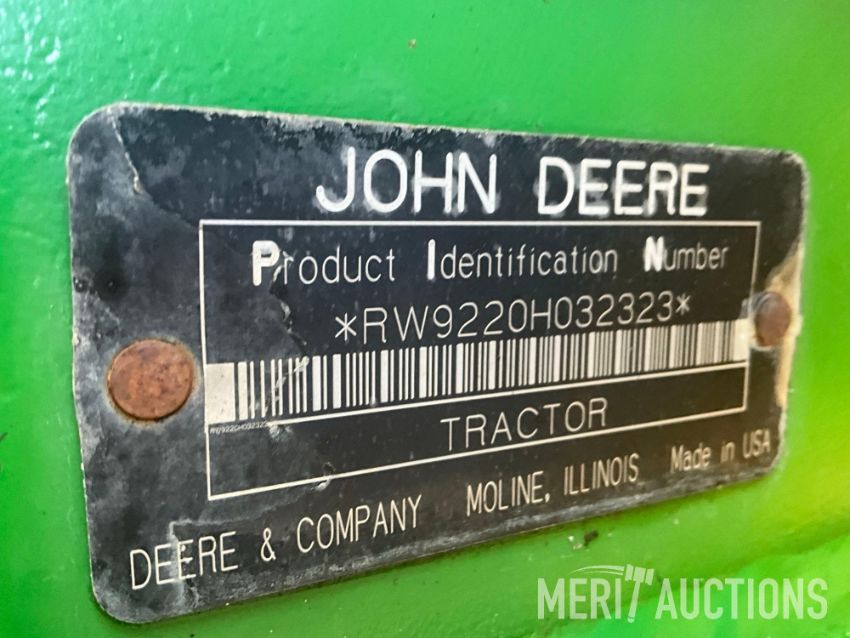 2005 John Deere 9220 4WD Tractor, Cab with Heat and A/C, Radio, 24 Speed Partial Power Shift Transmission., 4 Hydraulic Outlets, 620/70R42 Front and Rear Duals, Rear Wheel Weights, 3,919 Hours, SN: RW9220H032323