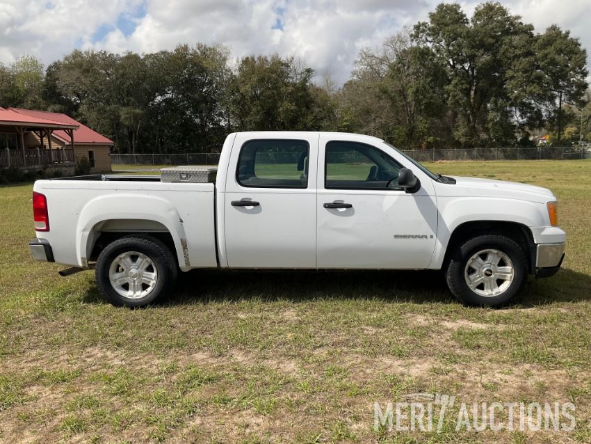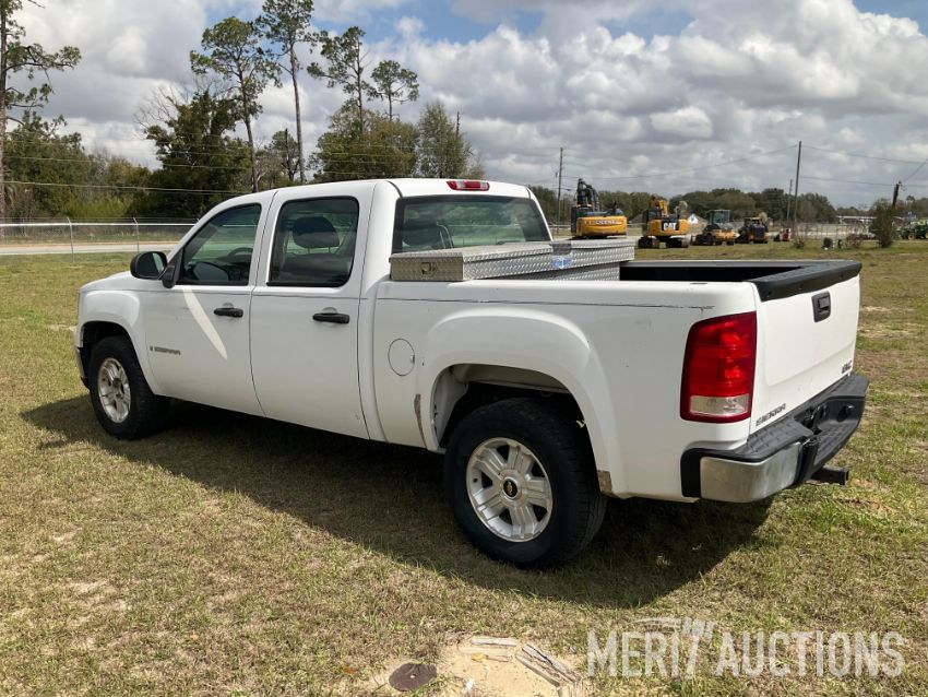 2007 GMC 1500 Sierra Pickup Truck, 4.8-Liter V-8 Engine, Crew Cab 4-Door, Automatic Transmission, power locks, manual windows, heat and AC, cloth interior, 275/65R18 Tires, Toolbox, Cranks and Drives, Mileage 306,957, VIN 1GTEC13C971507521.