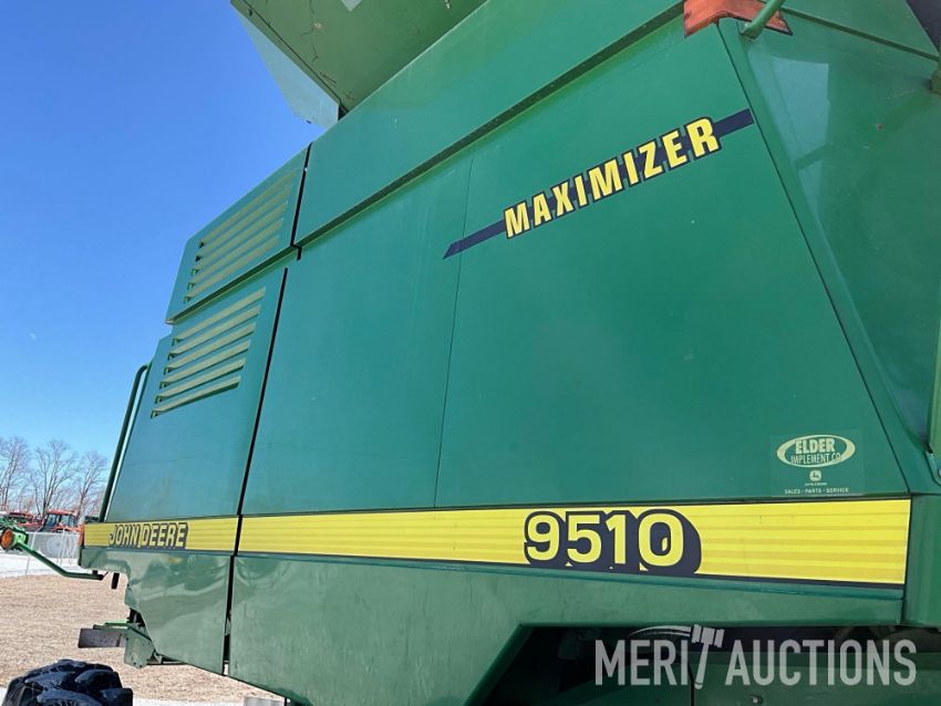 John Deere 9510 4WD Combine, Maurer Bin Extensions, Vittetoe Chaff Spreader, 18.4-26 Rear Tires, 20.8-38 Front Tires, 3,173 Separator Hours, SN: H09510X677616