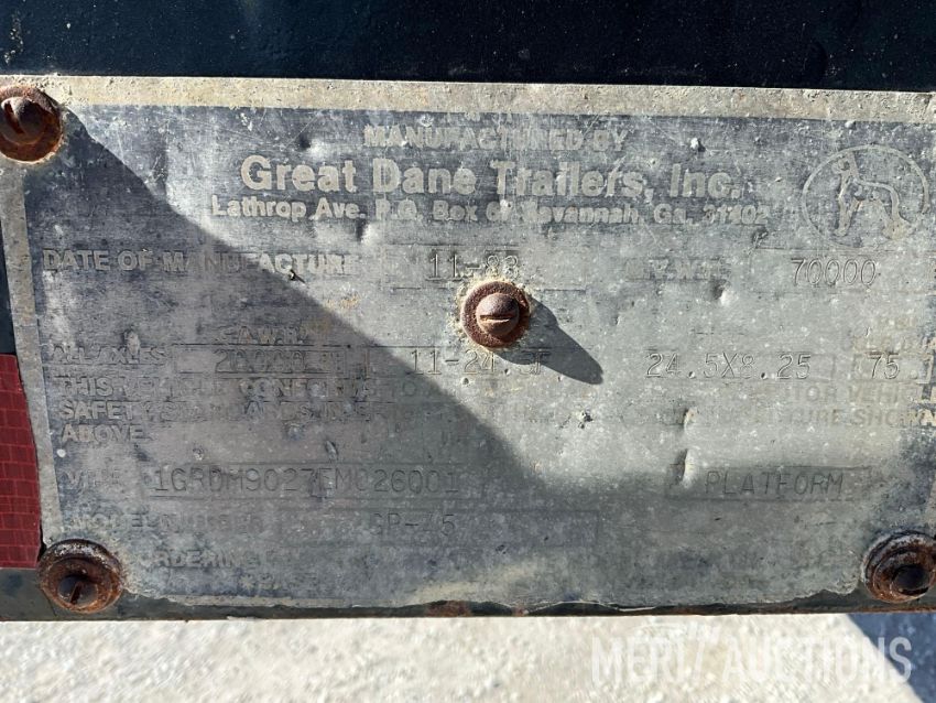 1984 Great Dane 45ft. Flatbed Semi Trailer, Spring Ride, 295/75R22.5 Tires, SN: 1GRDM9027EM026001
