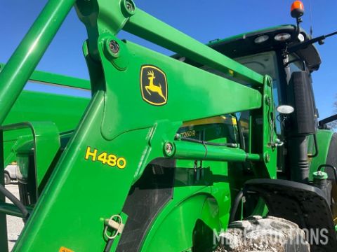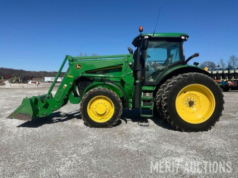 2013 John Deere 7260R MFWD Tractor with H480 Loader, 98in. Bucket, IVT Transmission, Triple Link Front Suspension, 5 Hydraulic Outlets, 540/1000 PTO, Quick Hitch, Front Fenders, Rear Fender Extensions, 480/80R46 Rear Duals, 380/85R34 Front Tires, Leather Trim, HID Light Kit, 1,186 Hours, SN:1RW7260RLDD014163