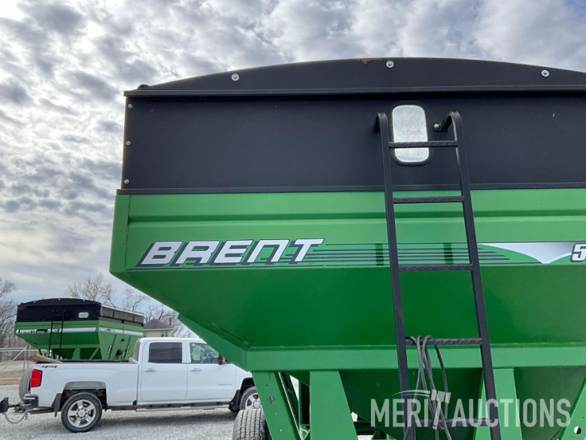 Brent 544 Gravity Wagon, Rear Axle Brakes, Light Kit, Rear Hitch, Roll Tarp, Center Dump, Safety Chain, 425/65R-22.5 Tires, SN: B2130112