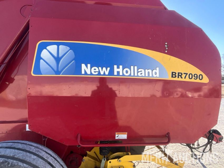 New Holland BR7090 Big Round Baler, 1000 PTO, Monitor, Bale Chute on Back, Extra Sweep Pickup, Net Wrap and Twine, Extra Pickup Teeth, 21.5-16.1 Tires, SN: YAN044356