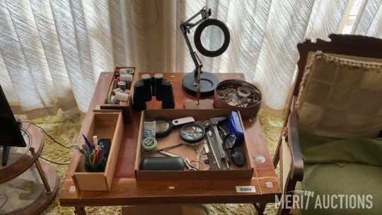 Table with Assorted Items and Chair