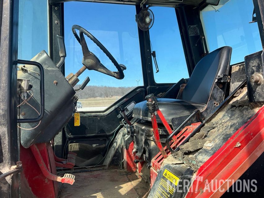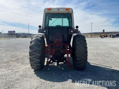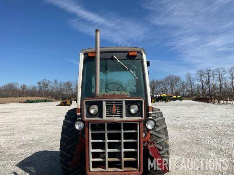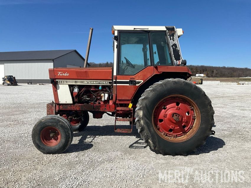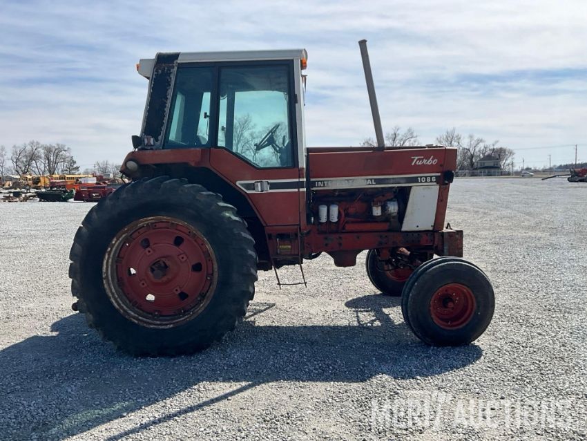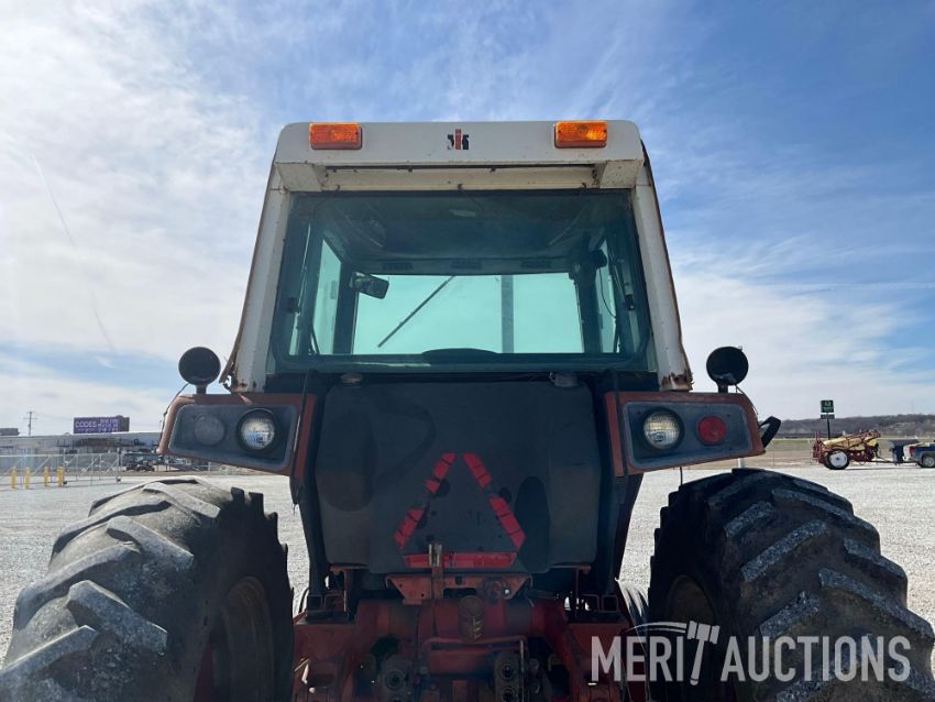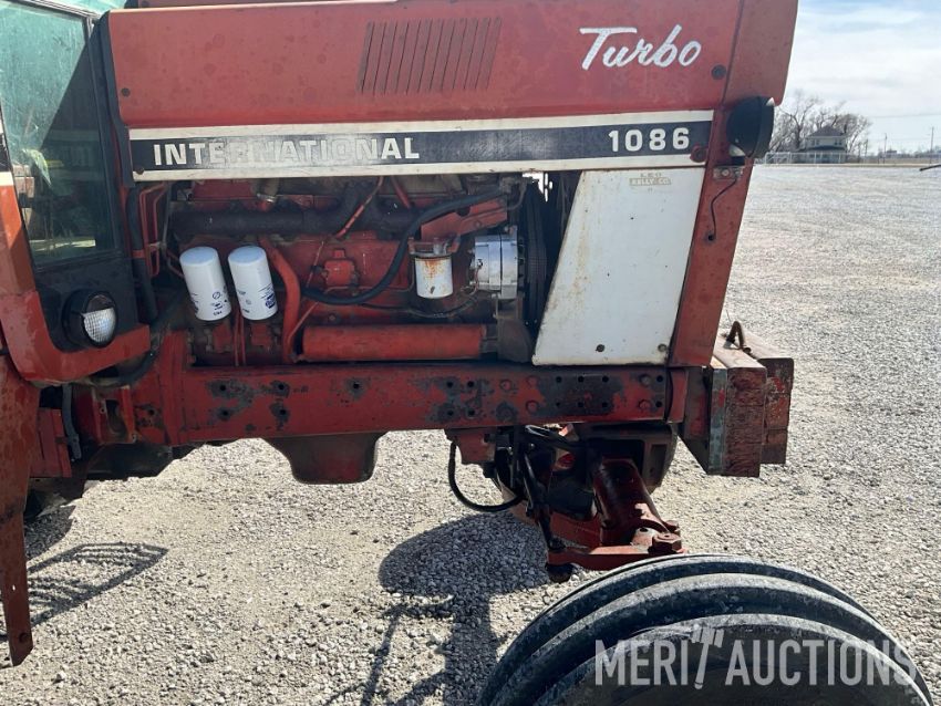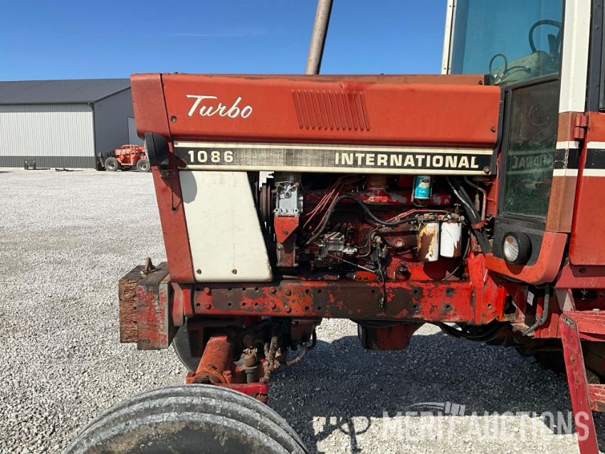 International 1086 Tractor, Hours Showing: 7,869. Cab, 540/1000 PTO, 3pt, 2 Hyd Outlets, Front Weight Block, 18.4-38 Rear Tires, 10.00-16 Front Tires, SN: 2610177U028295