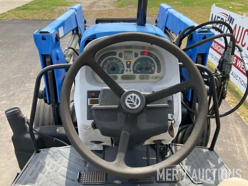 2008 New Holland T5040 Tractor, Hours: 2,049. OROPS, Canopy Top, 2wd, Triple Rear Remotes, Telescopic LIft Arms, Drawbar, 540rpm PTO, New Holland Loader, 3rd Function Hydraulics, Skid Steer Coupler w/Bucket, Rear Wheel Weights, 18.4-30 Rear Tires. SN: Z8JH02237