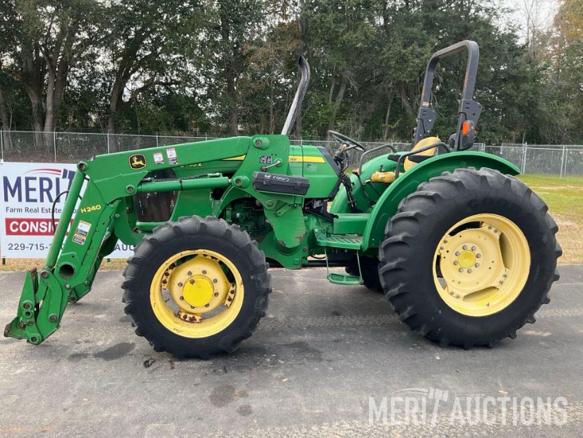 2013 John Deere 5083E Tractor, Hours: 3,304. MFWD, 12x12 PowerReverser Transmission, Two Rear Remotes, Telescopic Lift Arms, 540rpm PTO, Grill Guard, John Deere H240 Loader, 16.9-30 Rear Tires, 11.2-24 Front Tires. SN: 1LV5085EVCY510007