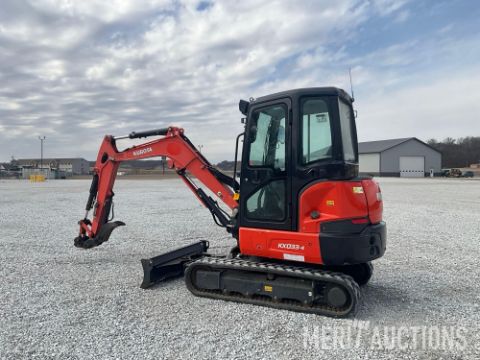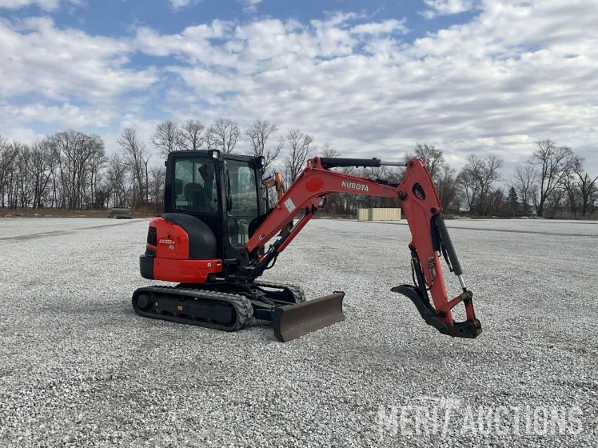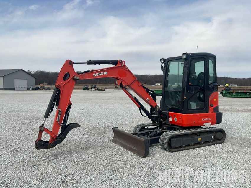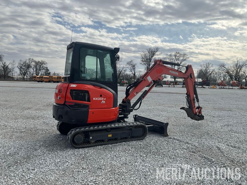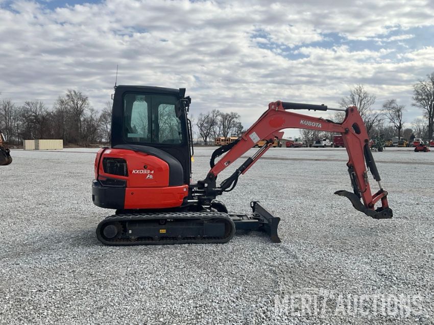2020 Kubota KX033-4 Excavator, Hours: 434. CAB w/AC, 61in. Angle Blade, Aux Hydraulics, Bucket Coupler, 2-Speed Travel, 12in. Rubber Tracks. SN: KBCK0334KK3J14079