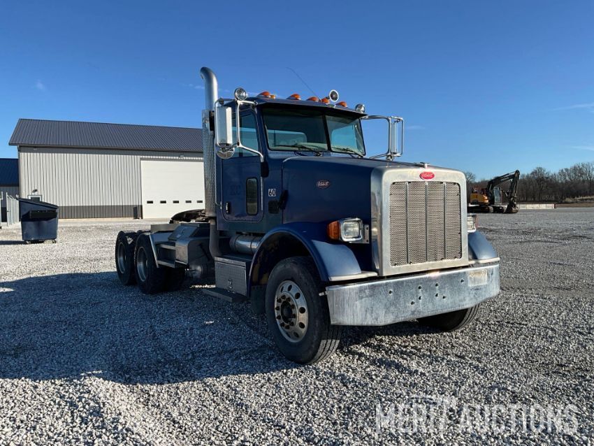 2010 Peterbilt Day Cab Semi Tractor, Miles Showing: 812,366, Cummins ISM 385V Engine, 13 Speed Eaton Fuller Transmission, Tandem Axle, 228in. Wheel Base, Air Ride, Wet Kit, Spot Lights, Aluminum Rims, 11R22.5 Tires, VIN: 1XPSD09X8AD793506