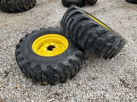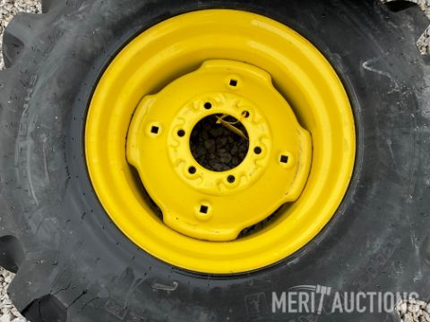 (2) New 14-17.5 NHS tires on John Deere 6-lug compact tractor rims, seller states: factory take-offs - sells 2 times the money, location: near Coal Valley, IL. Call seller, Kyle Jahn with questions: (309) 945-7947