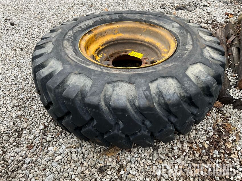 17.5X25 industrial tire on Deere articulated loader rim, seller states: factory slave tire, location: near Coal Valley, IL. Call seller, Kyle Jahn with questions: (309) 945-7947